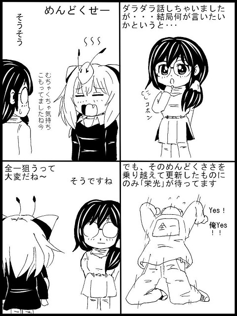 ない頭振り絞っていろいろネタ考えて、後で読み返して「コレ面白いか?」とか「ネタ細かすぎて伝わらないんじゃ?」